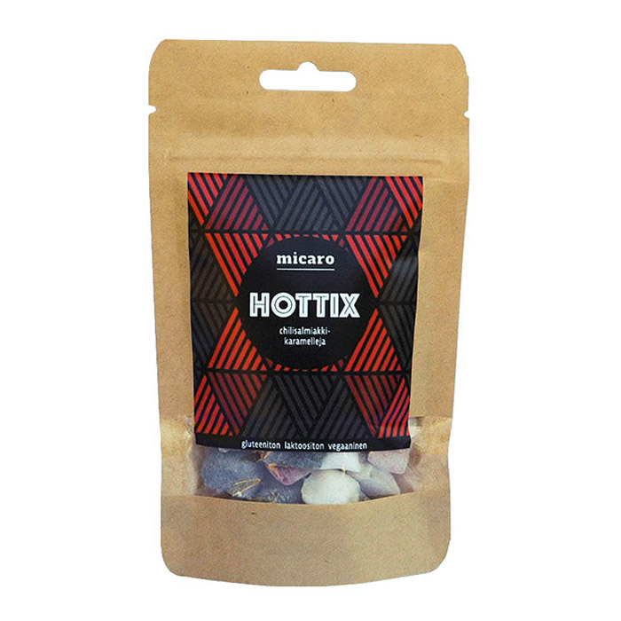 Hottix godisblandningen innehåller chili-salmiakgodis i tre olika, passligt starka och smakrika varianter.