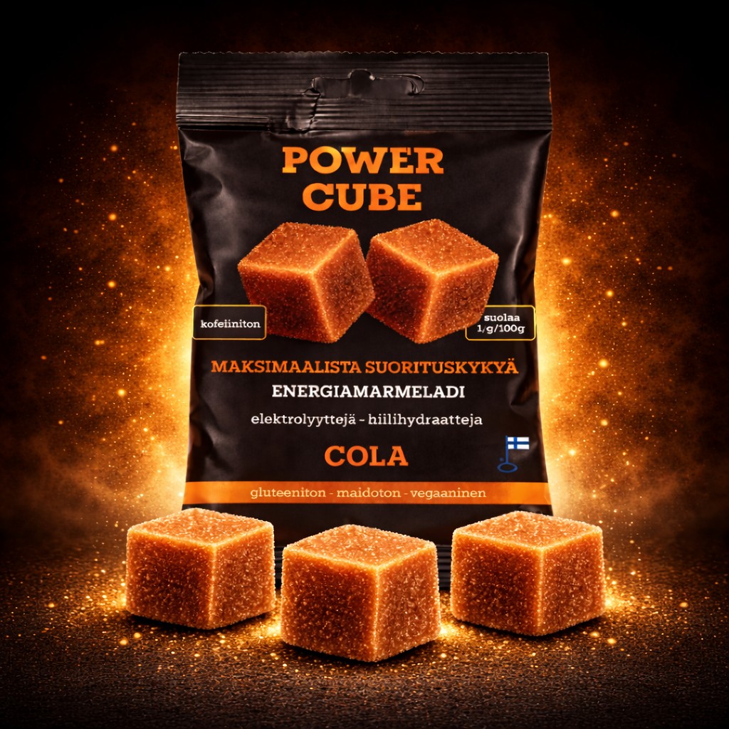 Power Cube tarjoaa kuormituksen aikana tärkeitä elektrolyyttejä natriumia, magnesiumia, kaliumia. Kahdessa maussa on lisäksi kofeiinia, jonka avulla saat lisää virtaa myös henkisesti.