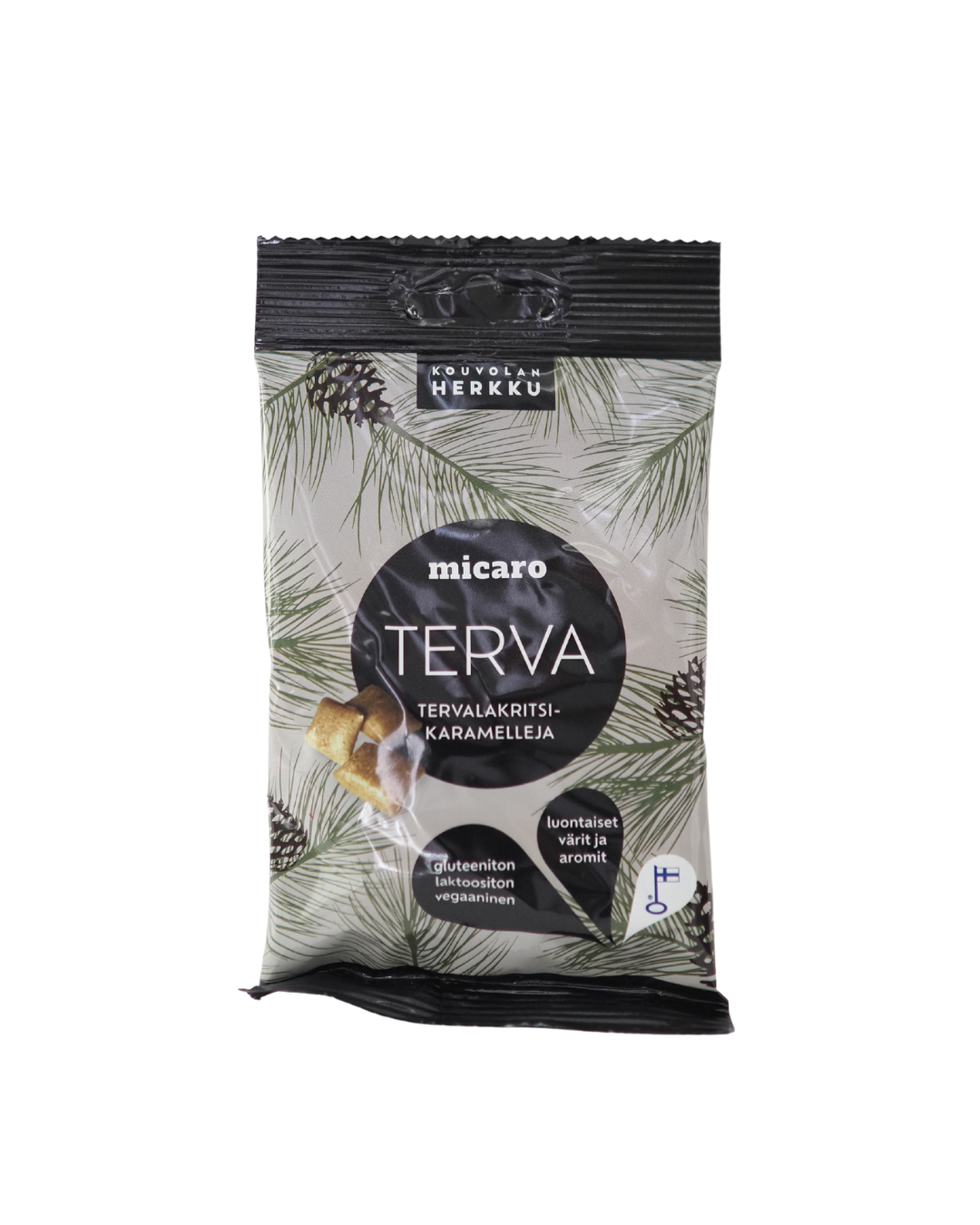 Micaro-tuoteperheen lempeä tervalakritsikaramelli, joka yllättää aidolla maullaan. Tämän kyseisen makeisen reseptiä on pitkään hiottu, ja onkin yksi ensimmäisistä tuotteistamme ja kestosuosikki.